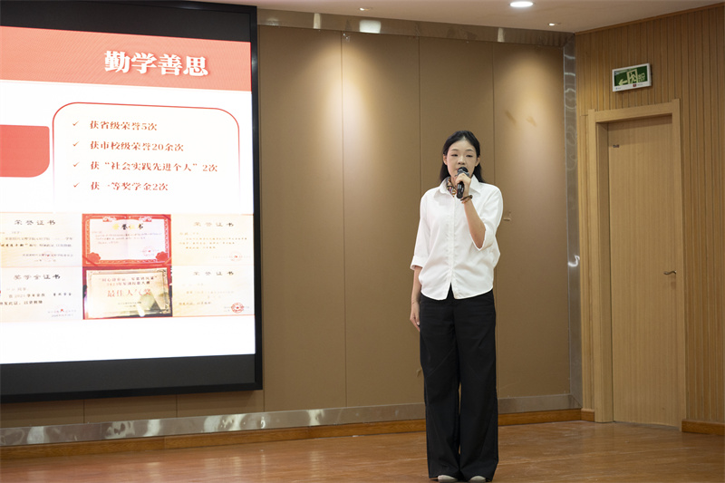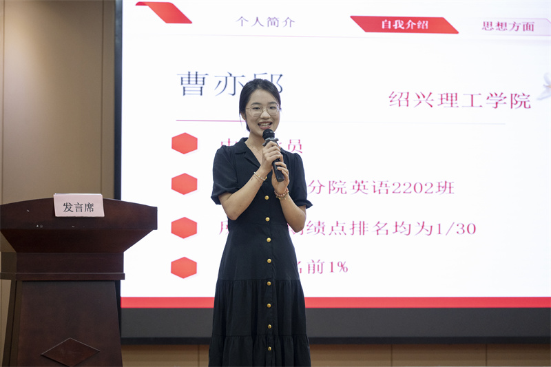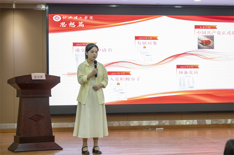 评审现场,20位候选人依次登台,围绕学业深耕、科研创新、社会实践与志愿服务等方面,结合个人成长经历,分享了他们的奋斗故事与收获感悟。真挚的讲述不仅勾勒出绍理学子扎实成长的轨迹,也生动诠释了“志存高远、脚踏实地”的精神内涵,引发了在场学生的强烈共鸣。大家纷纷表示,要以优秀学长学姐为榜样,将大学生活过得更有温度、有厚度。